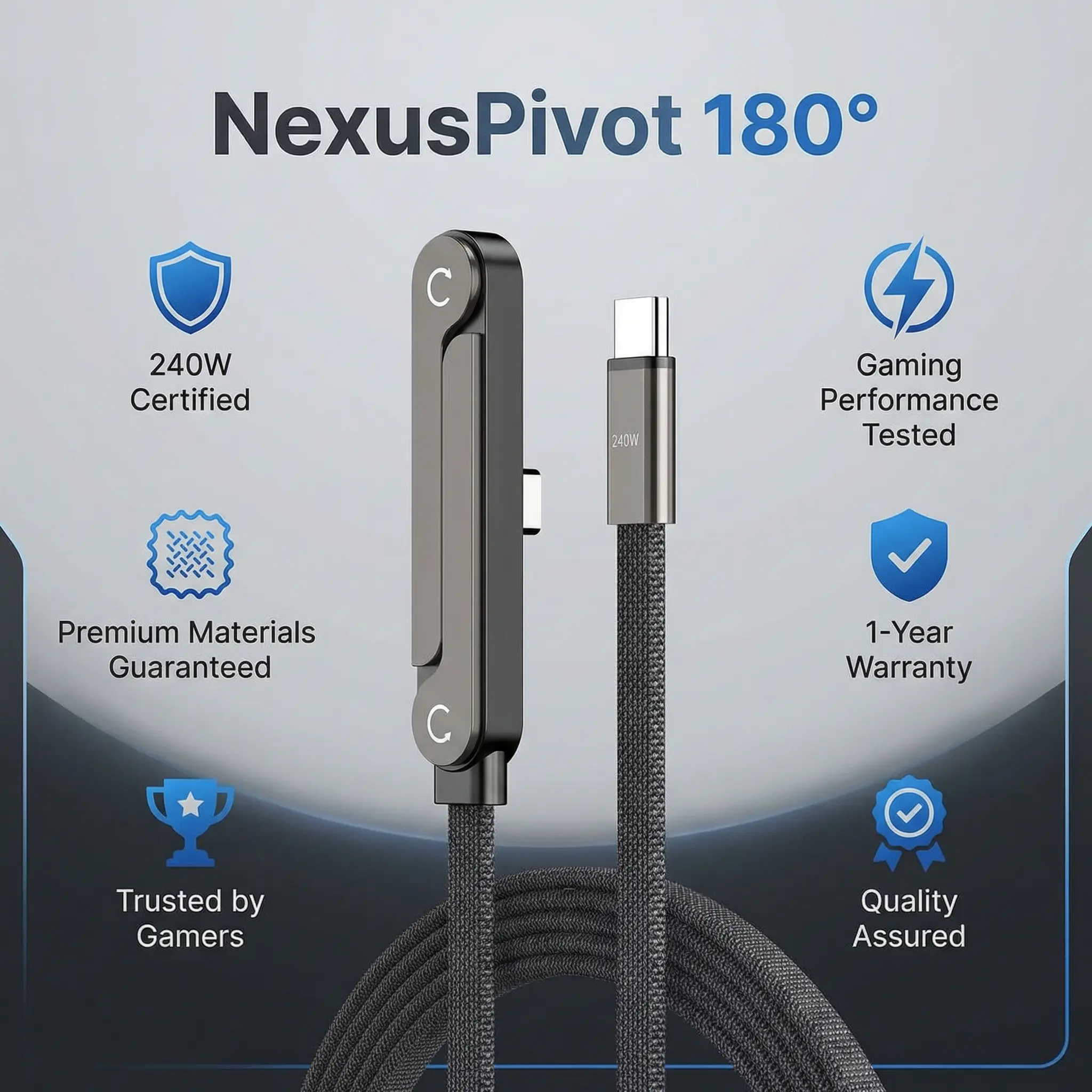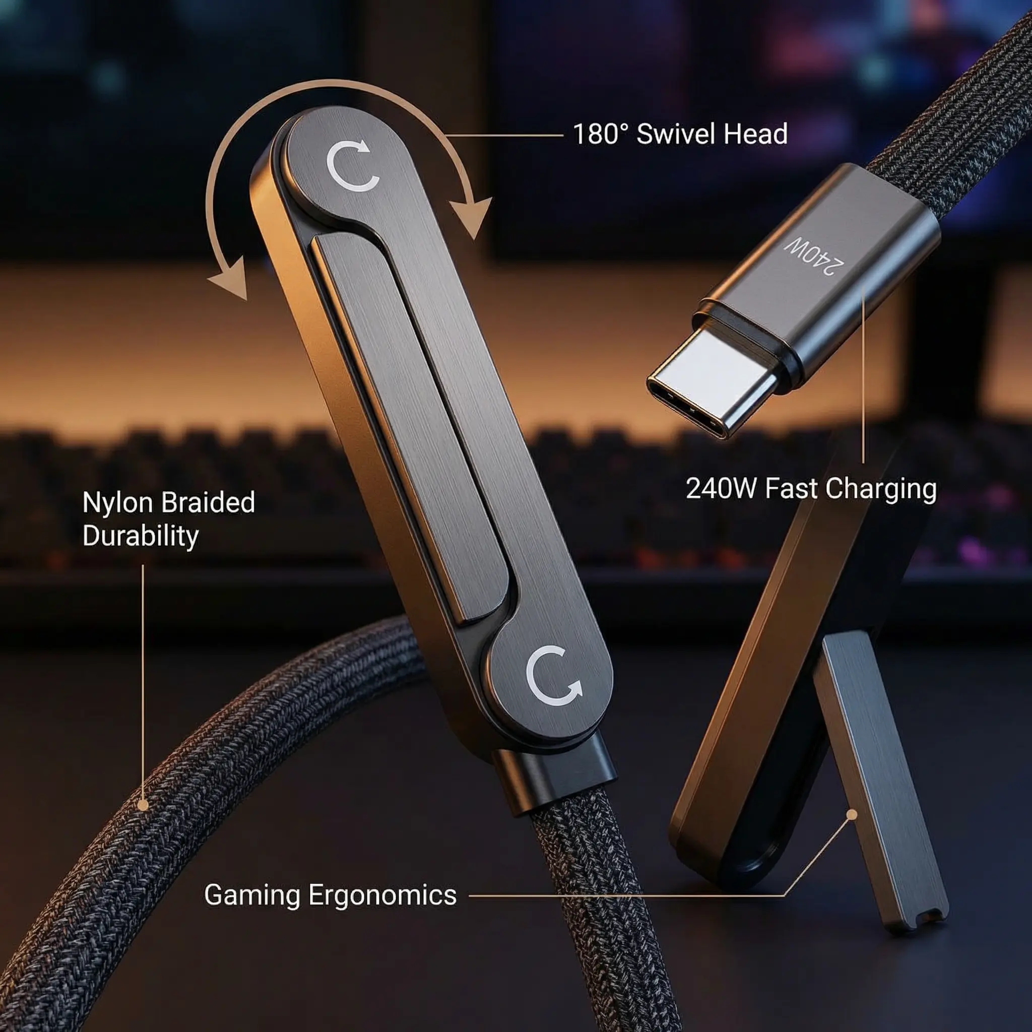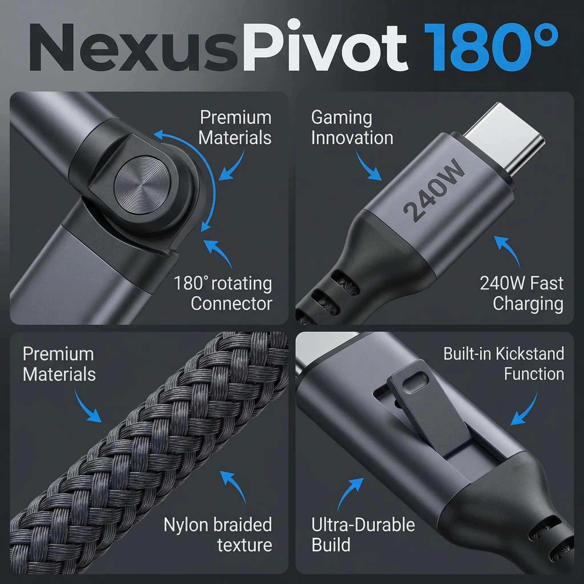 Game comfortably while charging with the NexusPivot 180° Gaming Cable! The unique rotating head moves with your grip, so no more blocked hands during battles. Plus, a hidden kickstand lets you watch videos hands-free.
