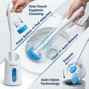 Ditch dirty brushes for the PureClick™ Hygienic Toilet Wand System! This smart, wall-mounted holder opens automatically for a touch-free, germ-free clean.