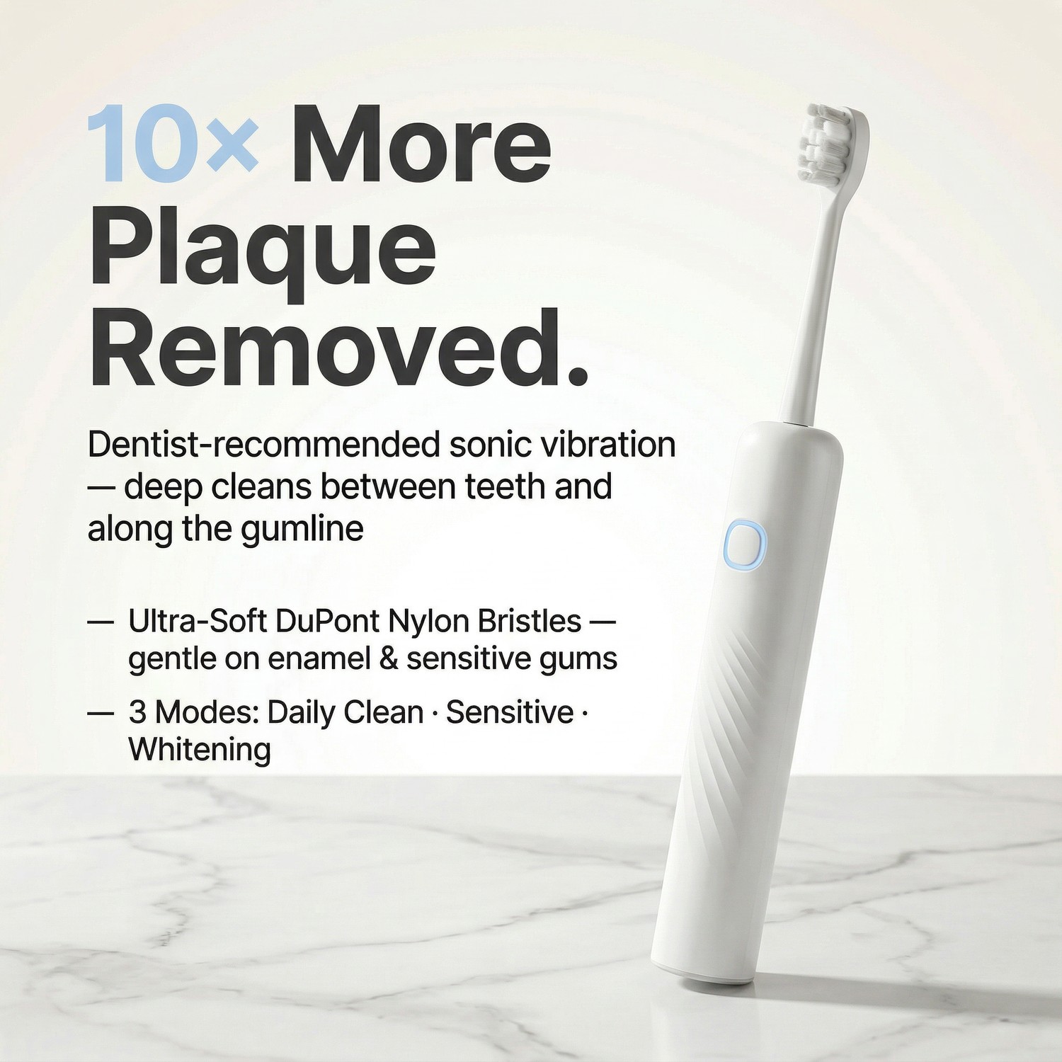 Upgrade your oral care routine with the SonicGlow Pro Electric Toothbrush — featuring high-frequency sonic vibration technology that removes up to 10× more plaque than a manual toothbrush. Soft bristles, IPX7 waterproof, USB rechargeable, and designed for the whole family.