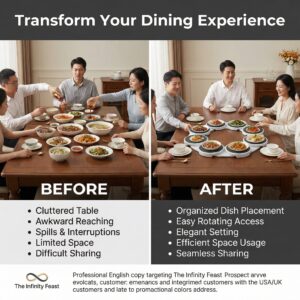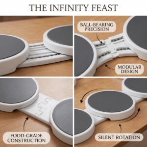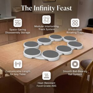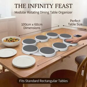 Stop reaching across the table! The Infinity Feast is the ultimate modular lazy susan for rectangular and oval dining tables. Perfect for holidays and family meals, this rotating server ensures everyone can reach the food.